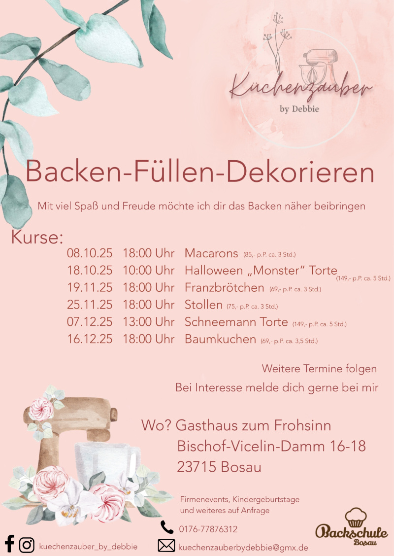 Debbis Backkurse sind ein echtes Erlebnis für Groß und Klein, Anfänger wie Fortgeschrittene. Ob du deine erste Torte backen möchtest oder schon Erfahrung mitbringst – es wird lecker.